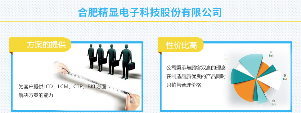 ?合肥精顯電子科技股份有限公司成立于2012年,由液晶行業知名企業廈門精顯電子有限公司投資建設,是一家研發、生產、銷售高品質液晶屏(LCD)、液晶顯示模塊(LCM)、背光(LED)、電容式觸摸屏(CTP)等節能環保產品并能為顧客提供解決方案的高新科技企業。 ?公司占地55畝,擁有建筑面積超過20000平米和潔凈廠房5400平米。 ?公司擁有一個超過15年以上LCD行業運營制造經驗的團隊。 ?公司獲得研發專利20余項。 ?公司通過C-TPAT認證,ISO9001:2008認證,產品通過了ROHS、REACH。 ?我們產品廣泛應用于智能儀表(水表,電表,氣表)、家電、儀器儀表、計量器械、文教 器具、UPS電源、智能手機機、平板電腦等電子產品的顯示和控制。目前我們已樹立了良好的品牌形象,并與眾多公司(如GE, Ja...